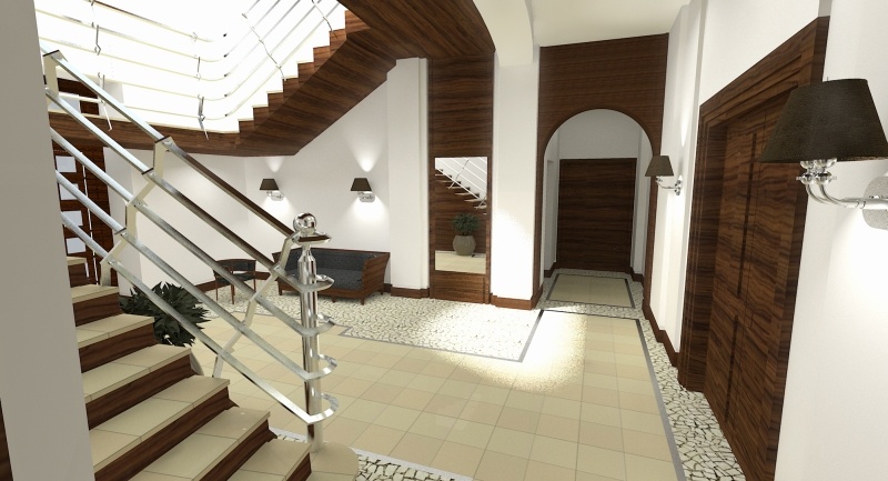 Design for hall. Architectural project rendering.