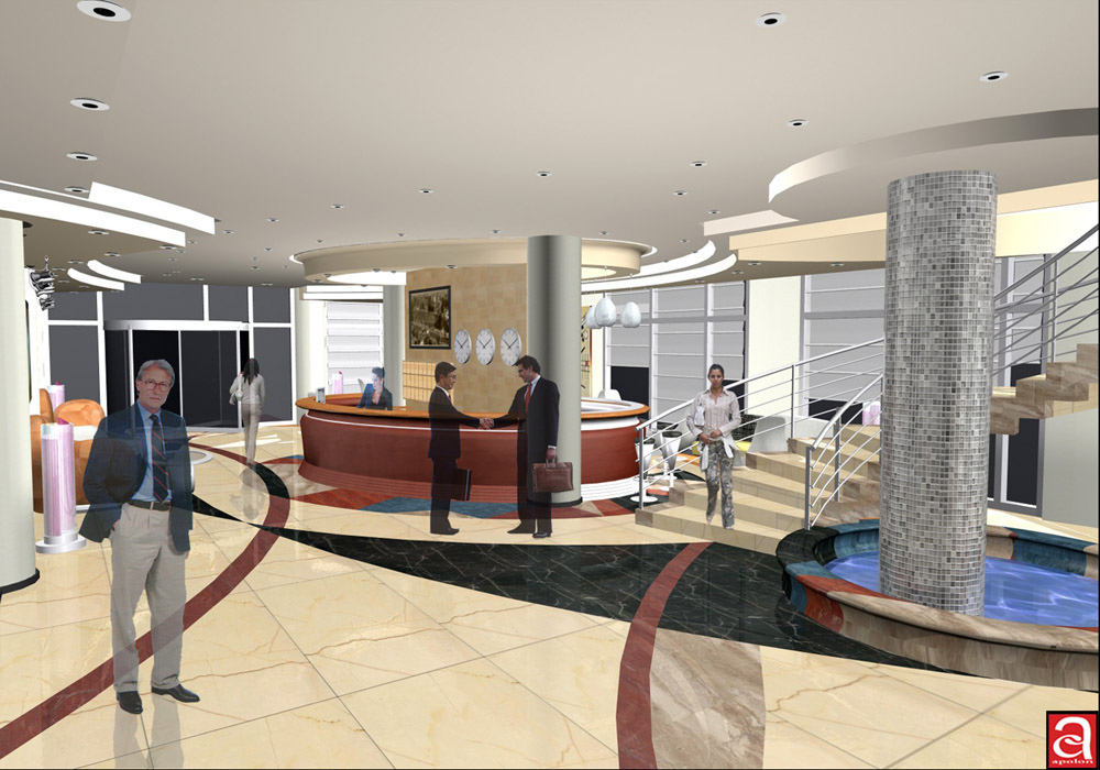 Hotel interior hall, center of Tirana. December 07. Used: CAD, 3D Max, Photoshop.