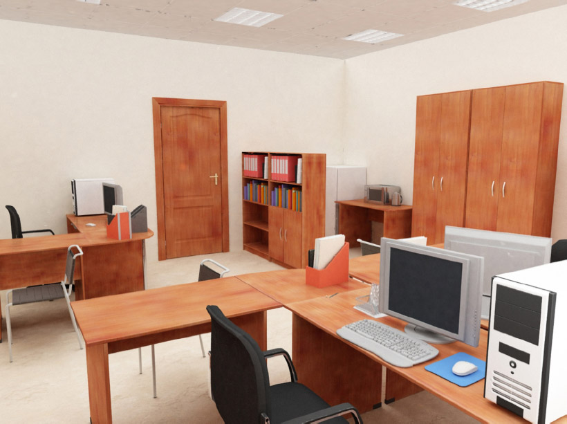 Interior rendering of office.