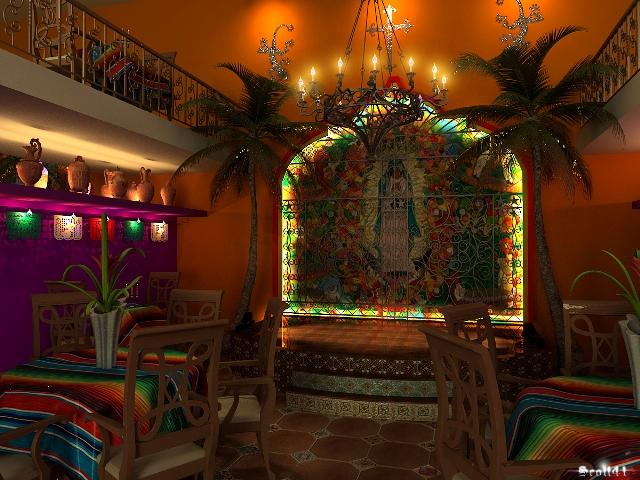 Interior design of Mexican restaurant.