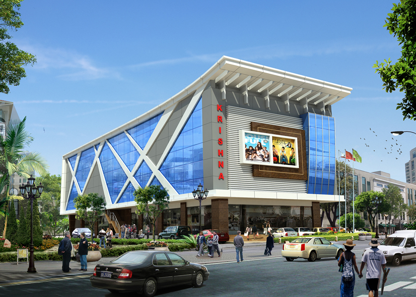Exterior visualization of office building.