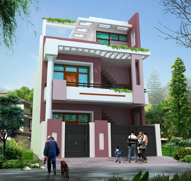 Exterior rendering of residential house.