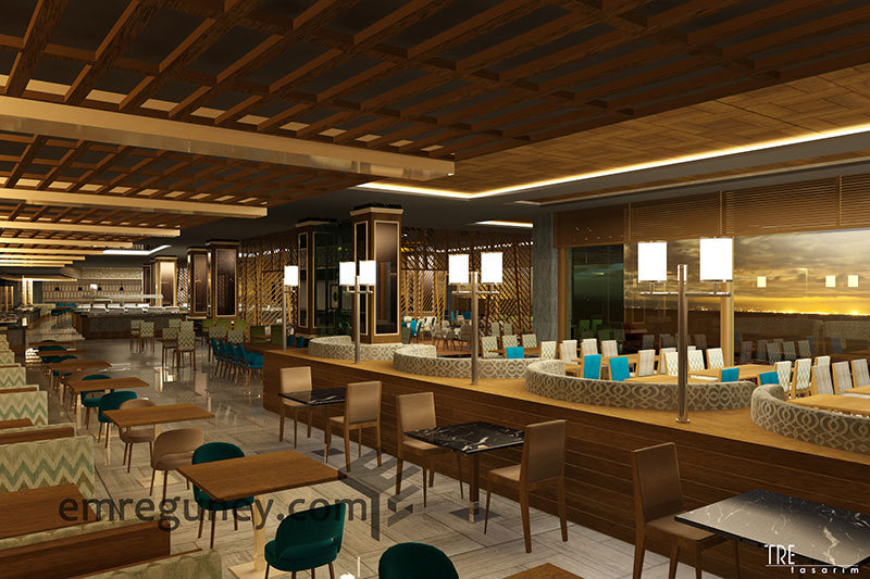 3D rendering of a restaurant.