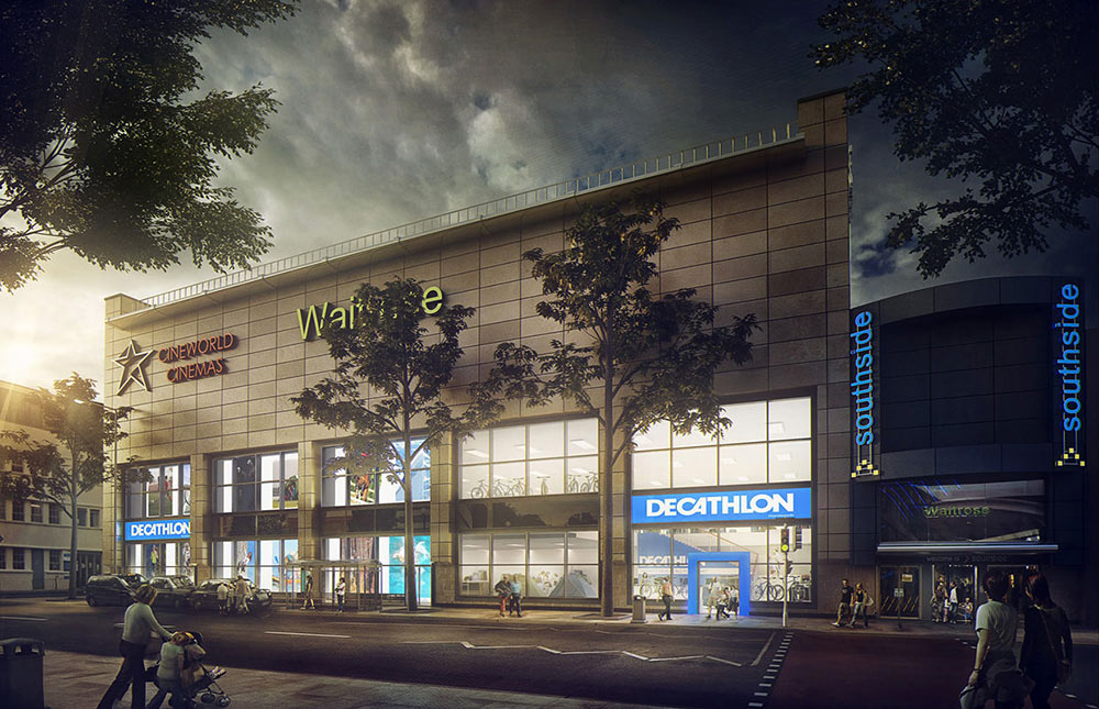 Exterior design of a shopping centre.