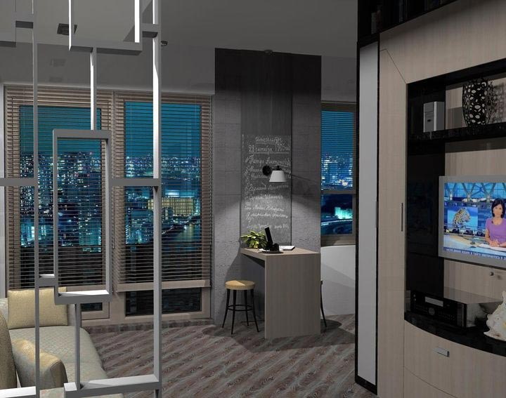 Дизайн-проект маленькой двухкомнатной квартиры площадью 32 кв.м. для молодой девушки.