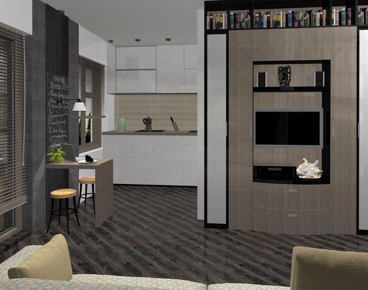Дизайн-проект маленькой двухкомнатной квартиры площадью 32 кв.м. для молодой девушки.