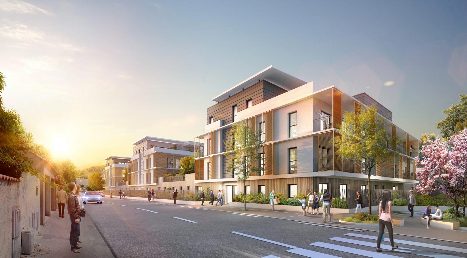The architecture embraces a contemporary spirit through the materials used (grid concrete platform, metallic shutters) and the treatment of volumes. Large penthouse apartments with a roof overhang for sun protection enhance this effect. The layout encourages openings and broad views of the surroundings.