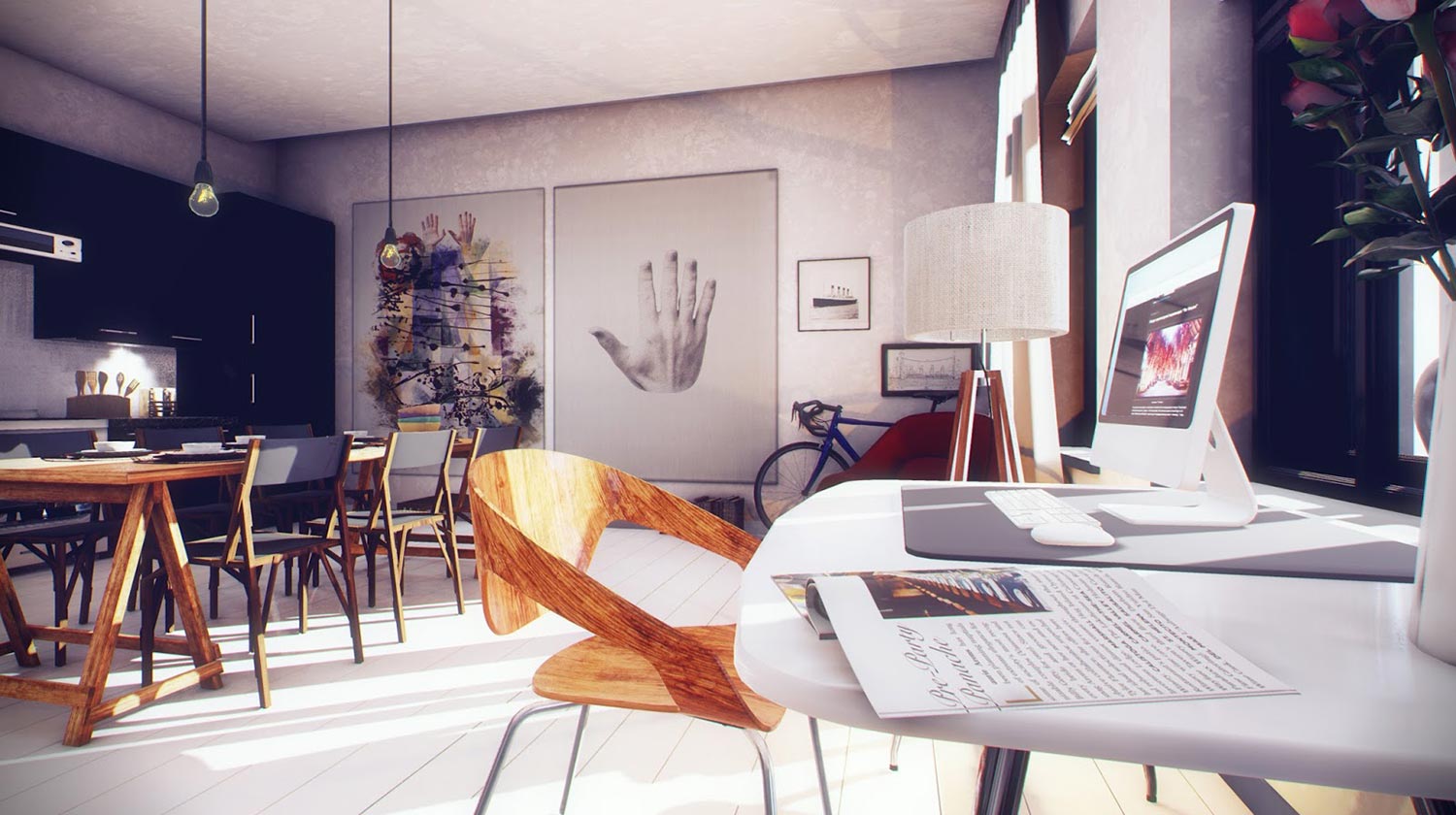 Presentation rendering of a office.