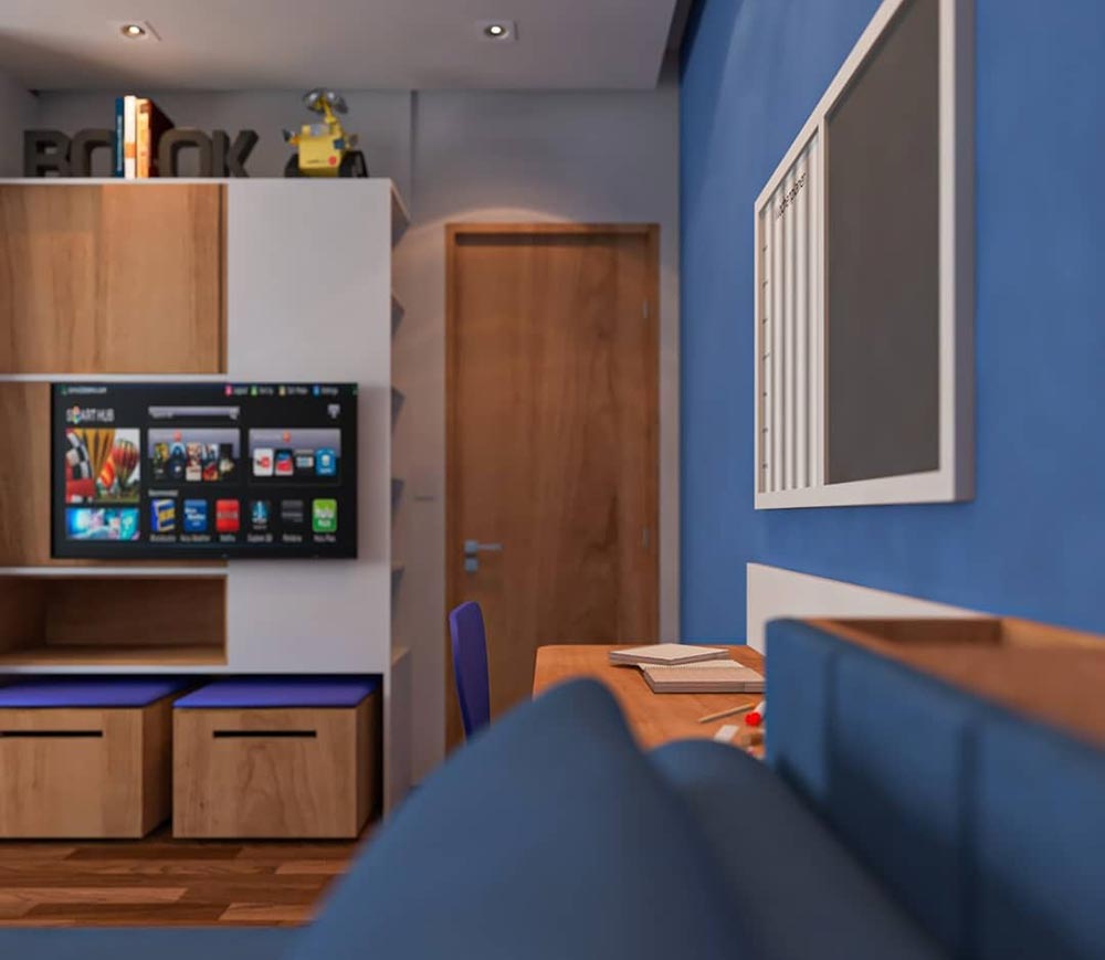 Study room for two boys, with the main goal of creating a multimedia environment where it is possible to study, play, sleep, etc.