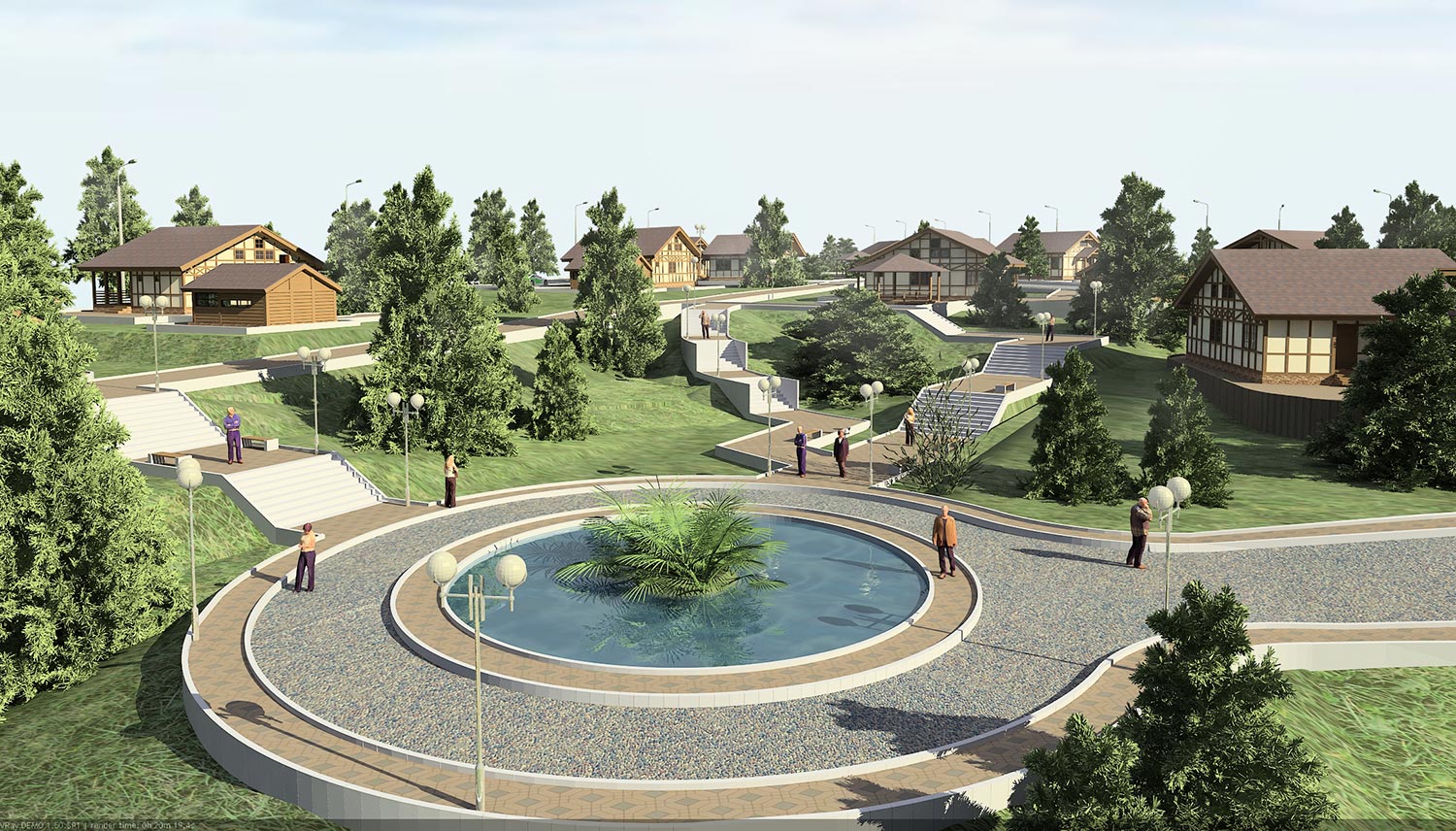 Фабрика Архитектуры выкладывает на обозрение очередной проект визуализации проекта застройки участка коттеджным поселком.