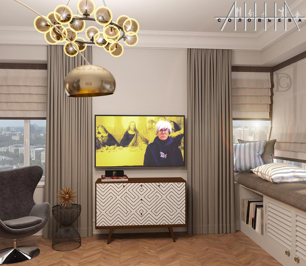 Interior design and visualizations of a residential flat at Moscow. These conceptual visualizations are 3d sketches of the design ideas and visual style of private apartment, created for Anna Solovieva as project leader.