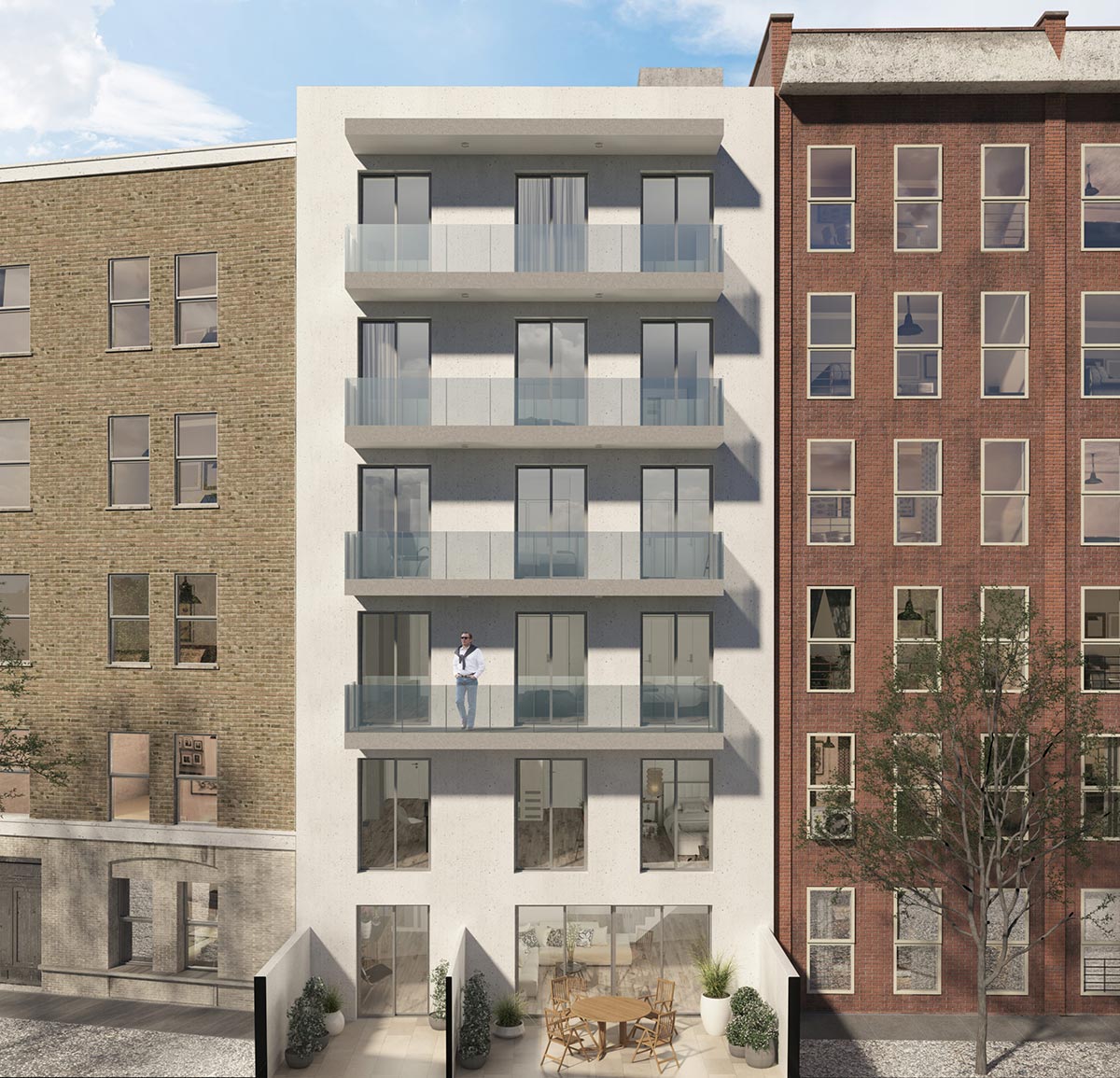Exterior visualization of a apartment building.