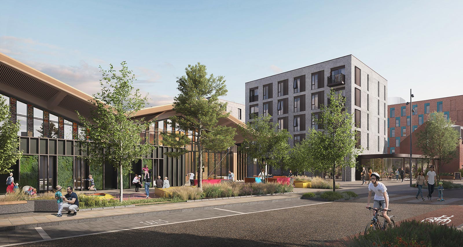 Plans to revitalise St Helens Town Centre have been produced by Muse. Working with Jon Matthews Architects and Planit, detailed plans to introduce a new market hall flanked by a hotel, residential and office buildings. Virtual Planit were engaged to produce the CGIs for consultation.