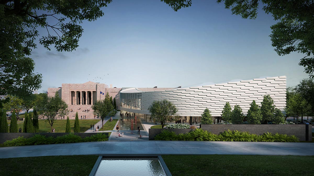 APMA was selected to collaborate with Snøhetta on the design of the new Rhonda and Howard Hawks Pavilion expansion and renovation of existing buildings for Joslyn Art Museum in Omaha, Nebraska. The new addition will be designed to house the Museum’s recently acquired works from the Phillip G. Schrager Collection of Contemporary Art. The design reorients the Museum entrance to increase visibility from the street and extends the existing atrium, creating views of surrounding nature and the Museum’s sculpture garden. The overall design seeks to interweave the landscape with the addition.